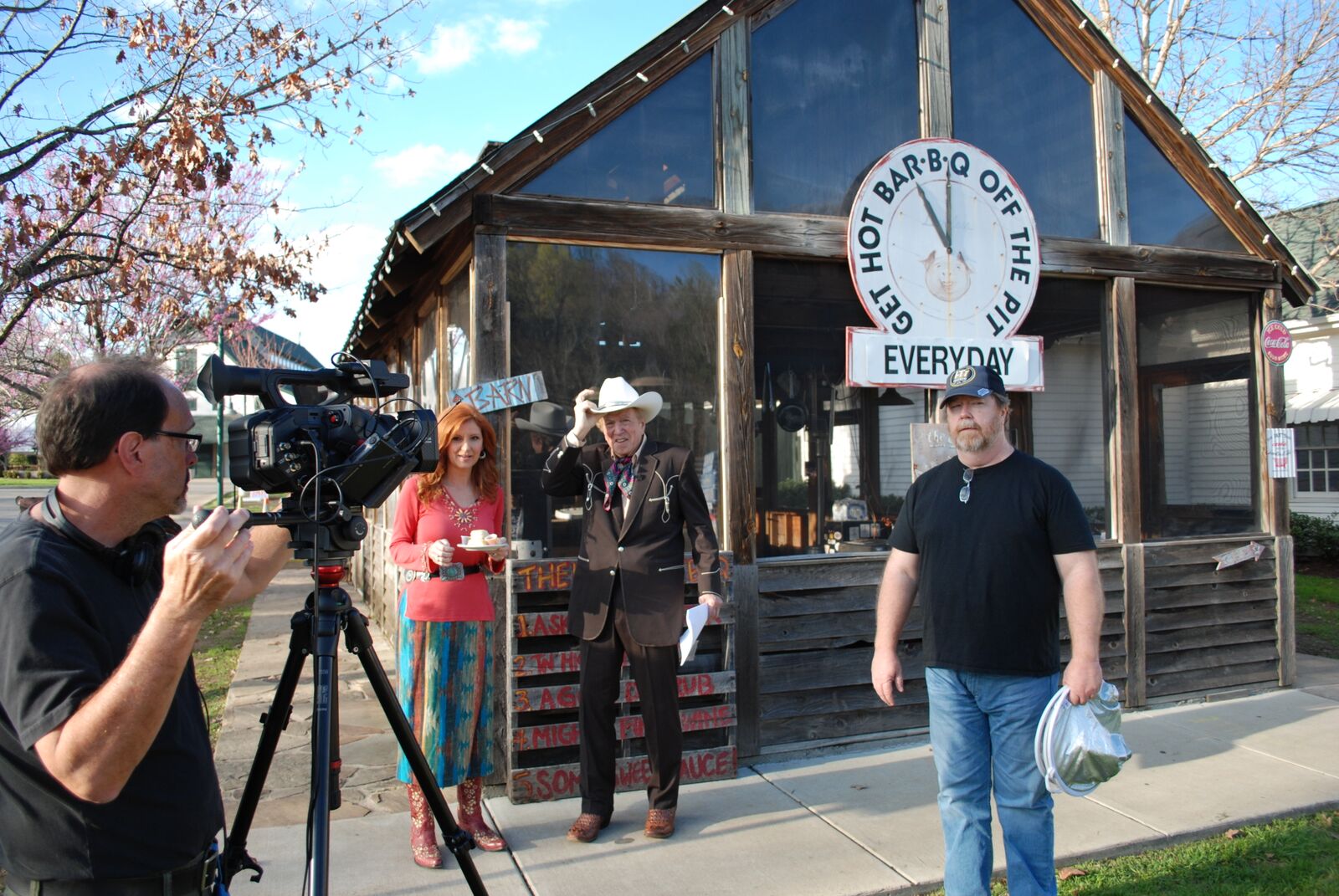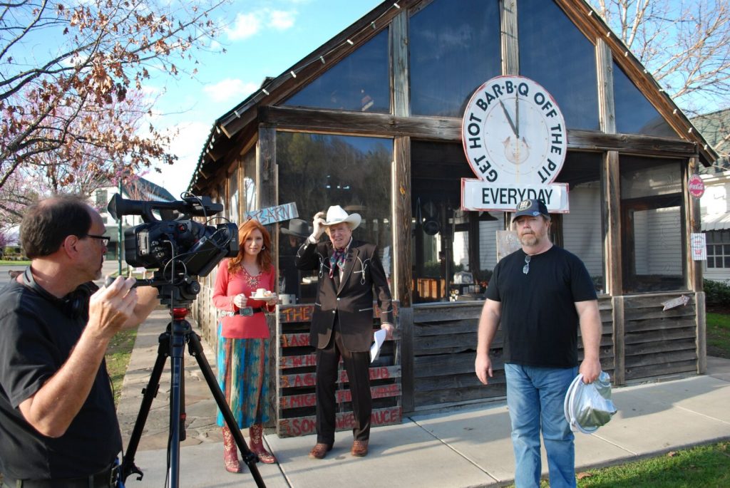 (above) Vince Pinkerton and Tom Terry, cameraman (Pinkerton Productions), filming an episode with Jennifer and Rich on location at Nashville’s famous Loveless Café.