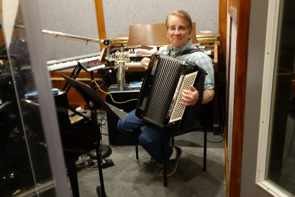 Joey Miskulin (a.k.a. “Joey the Cow Polka King,” Riders In The Sky) takes a break from the recording session.