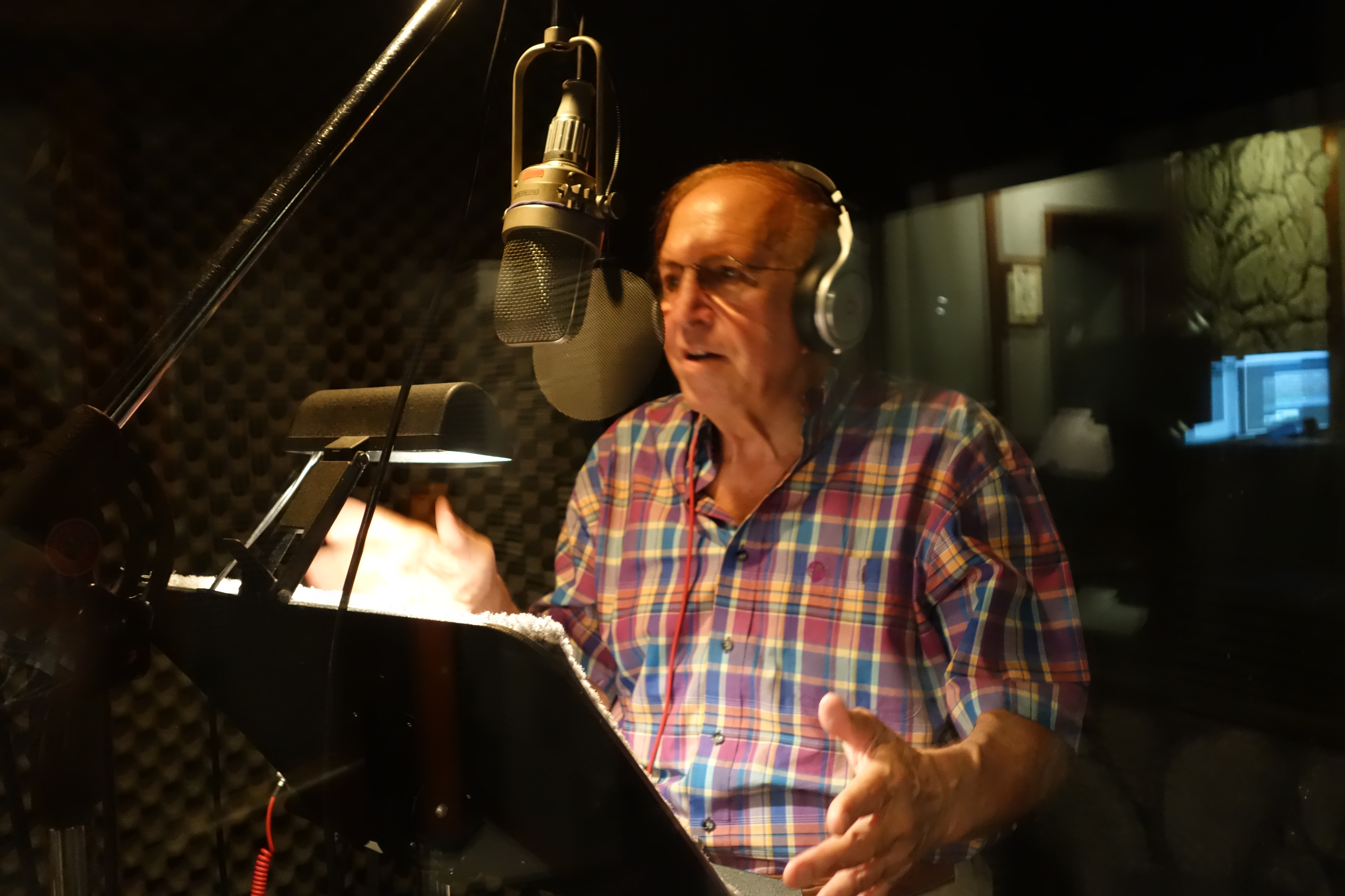 Rich, laying down vocals in the booth