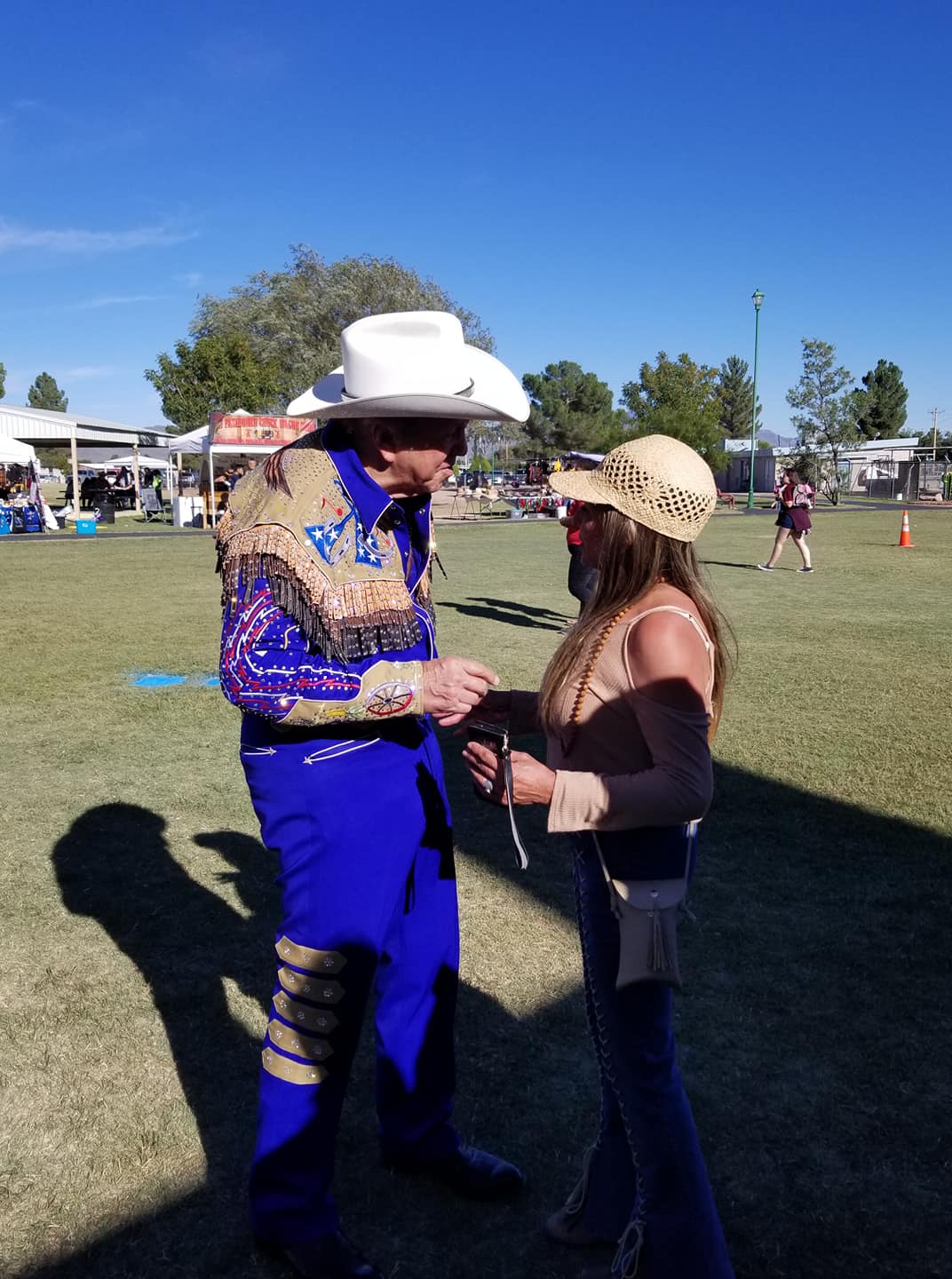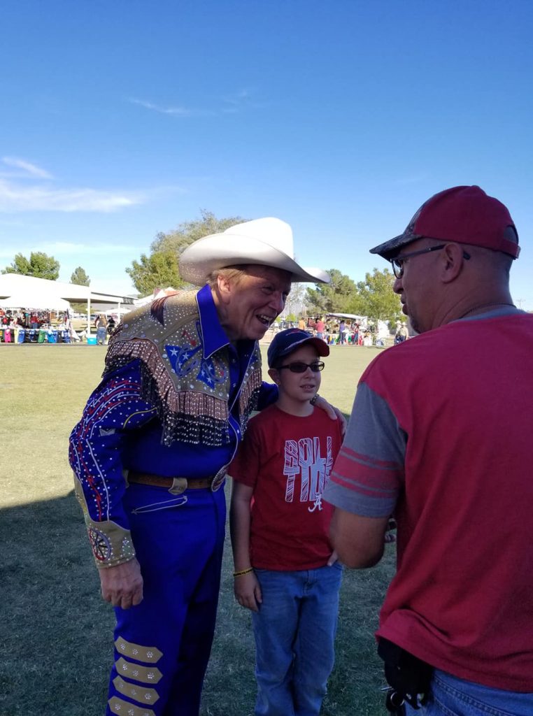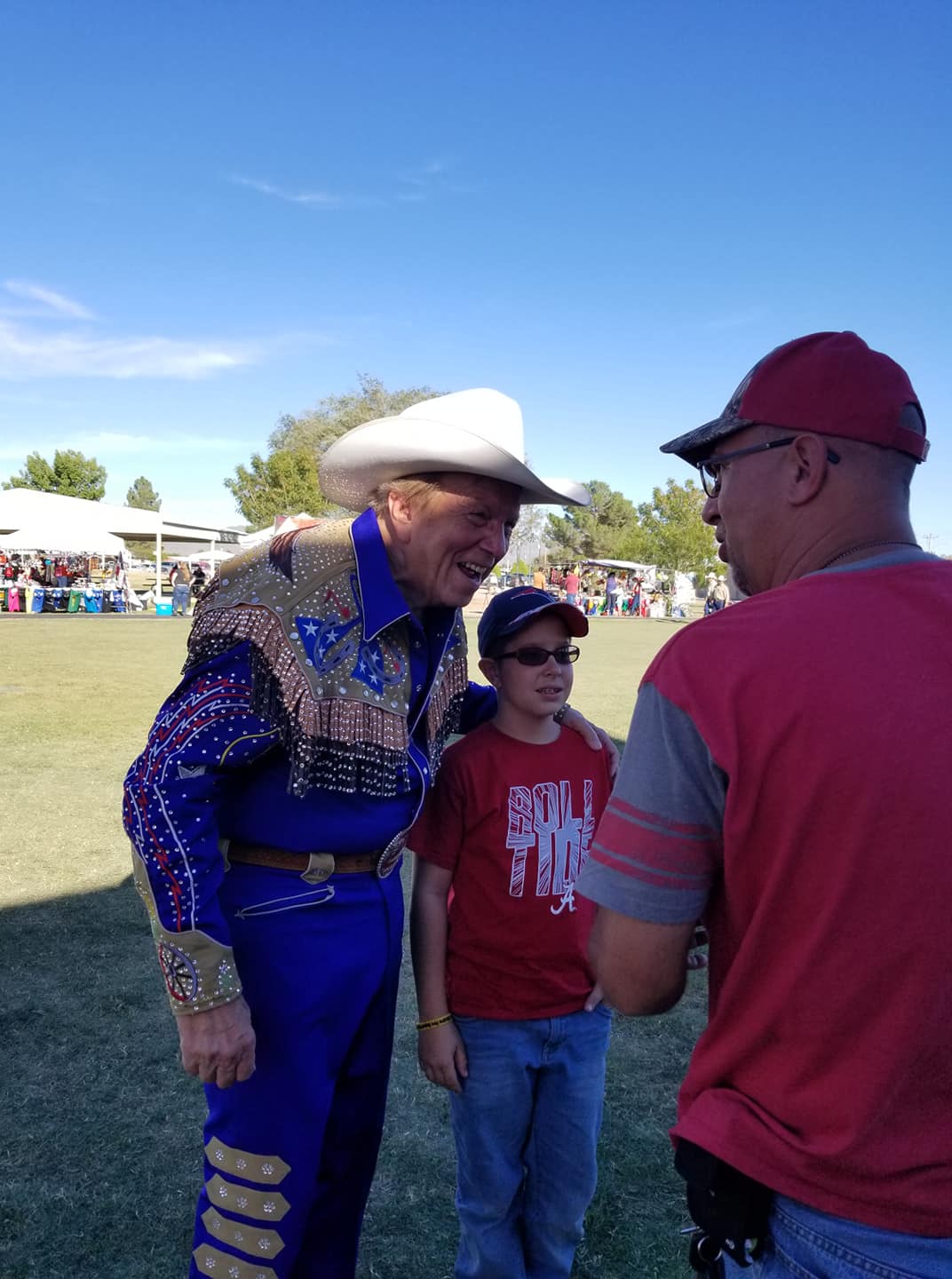 Rich Price, The Singing Sierran, visits with fans at the 67th annual Rex Allen Days, in Willcox, Arizona.